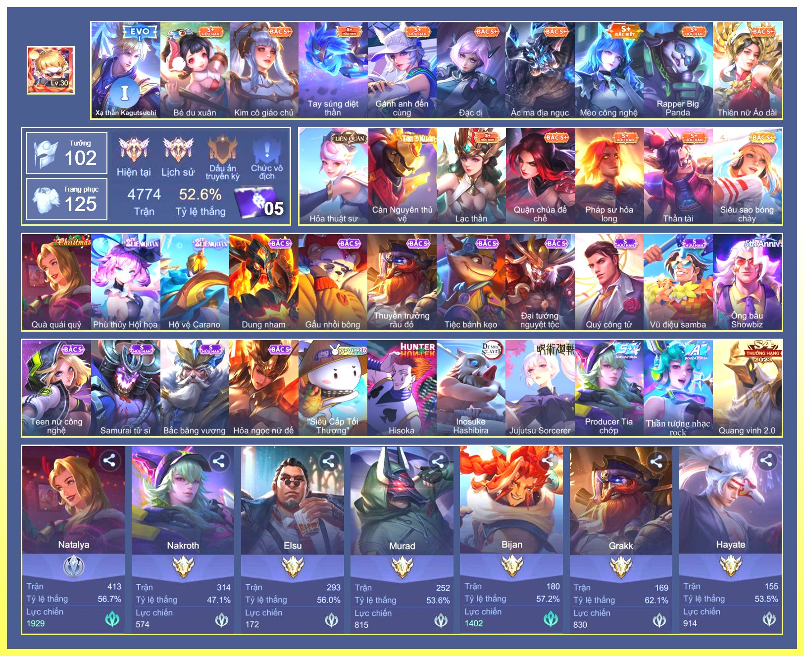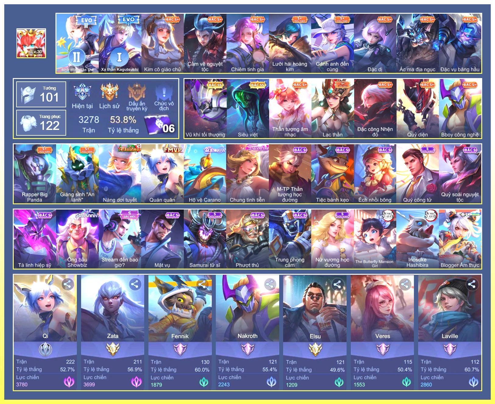 Nổi bật: Rất Nhiều Skin Đẹp Vip.Ngọc 90.Valhein Vũ Khí Tối Thượng.Butterfly Bình Minh Tận Thế.Nak Bboy Công Nghệ.Nak Quán Quân.Raz Băng Chuyền Quán Quân.Ngộ Không Đặc Vụ Băng Hầu....