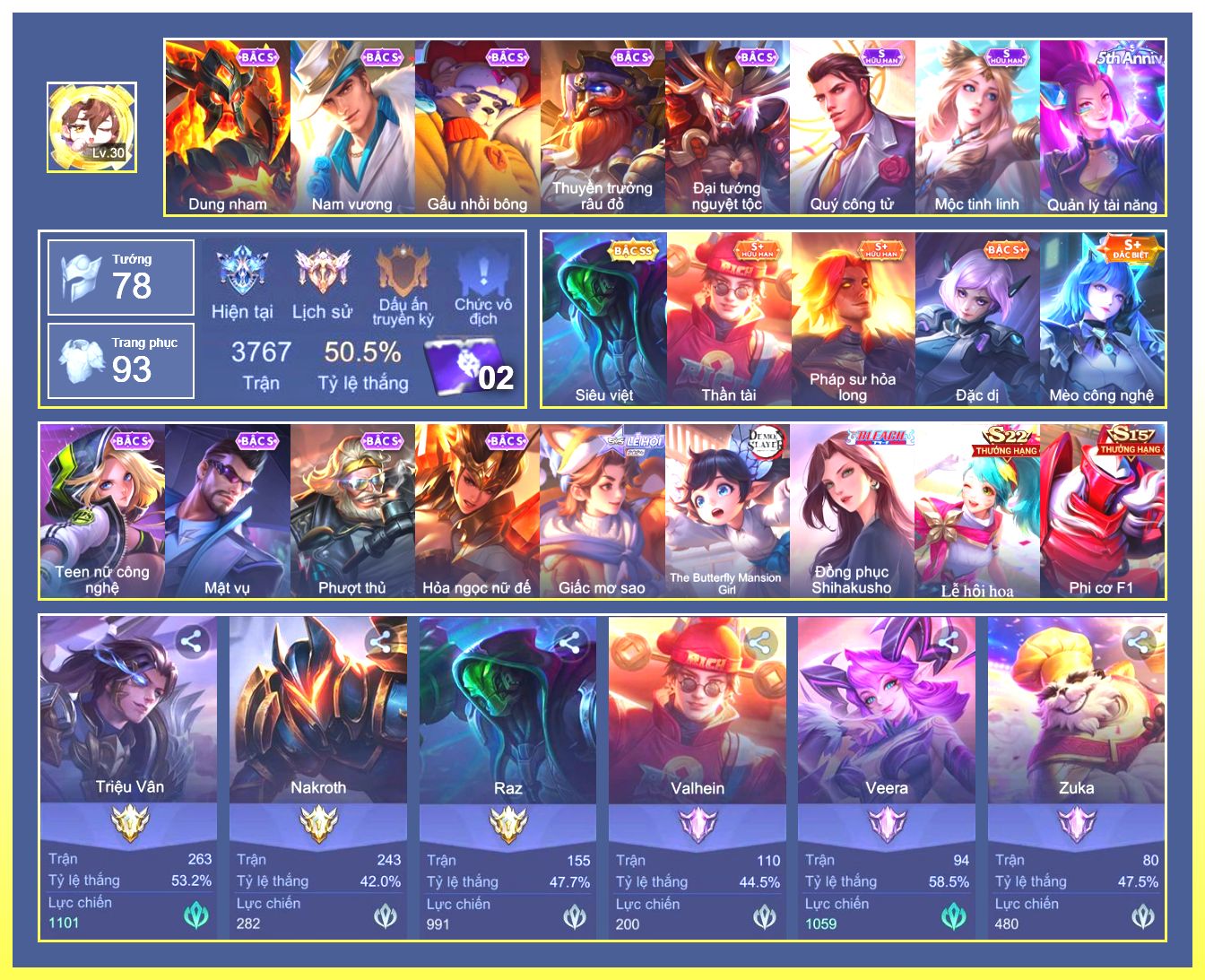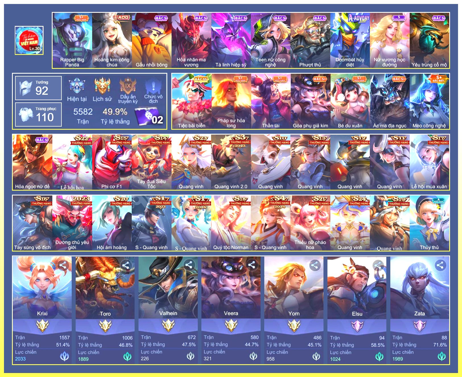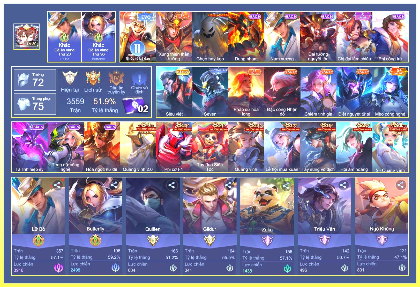 Nổi bật: Raz Muay Thái.Richter Thần Kiếm Susanoo.Gildur Xích Long.Tachi Xích Long Hỏa Diệm.Ngộ Không Đặc Vụ Băng Hầu....