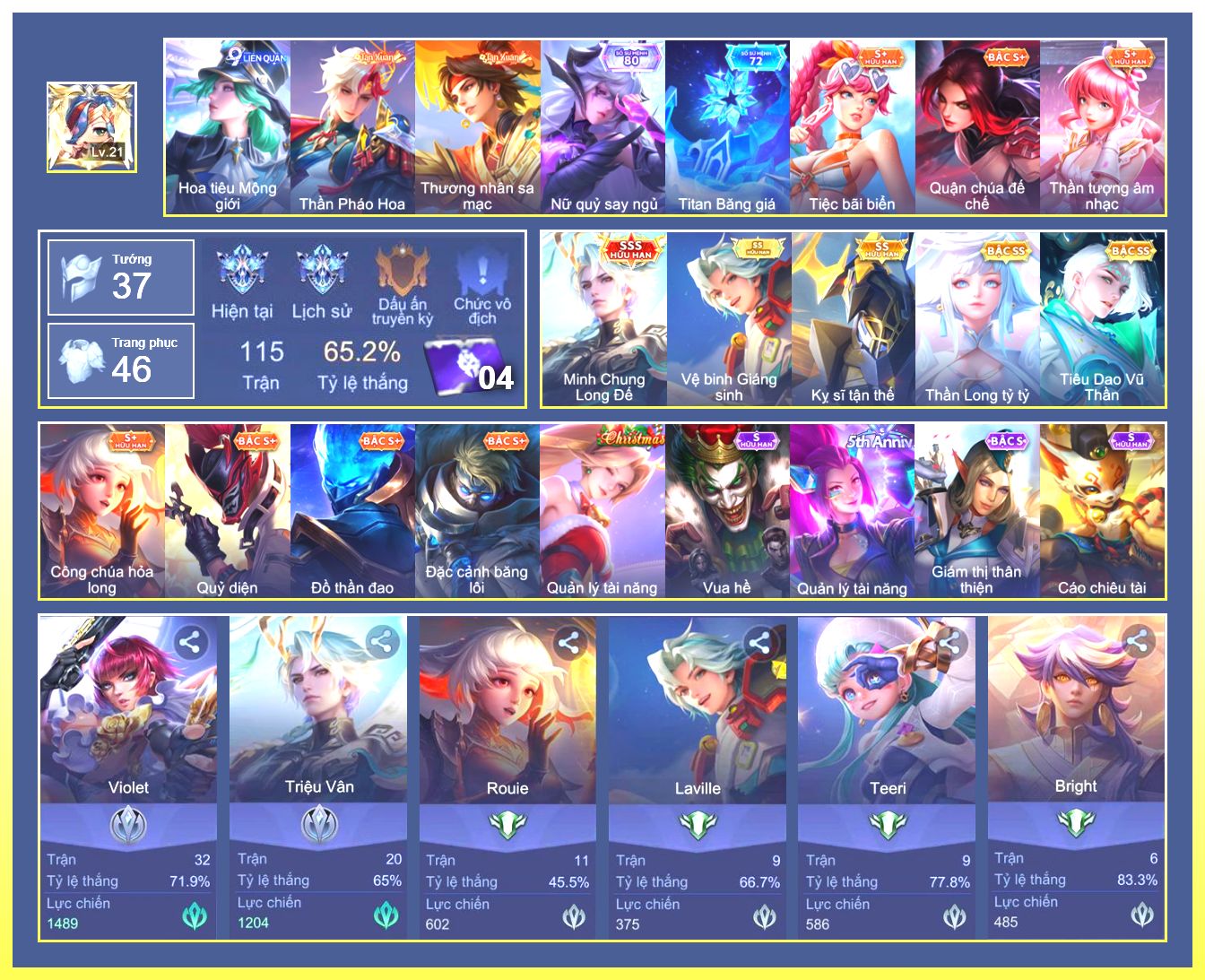 Nổi bật: Rất Nhiều Skin Đẹp Vip.Ngọc 90.Dư 2 Đá Quý.Yorn Thế Tử Nguyệt Tộc.Valhein Vũ Khí Tối Thượng.Flo Seven.Butterfly Bình Minh Tận Thế.Valhein Cá Mập Nghiêm Túc.Valhein Hoàng Tử Băng.Hayate Quỷ Diện....