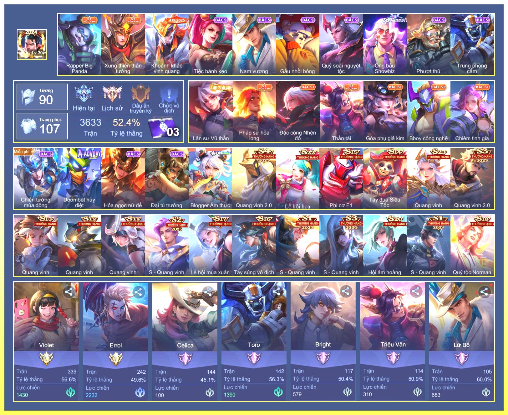 Rất Nhiều Skin Đẹp Vip.Ngọc 90.Dư 3...