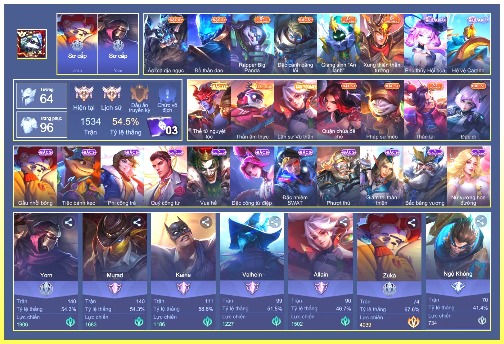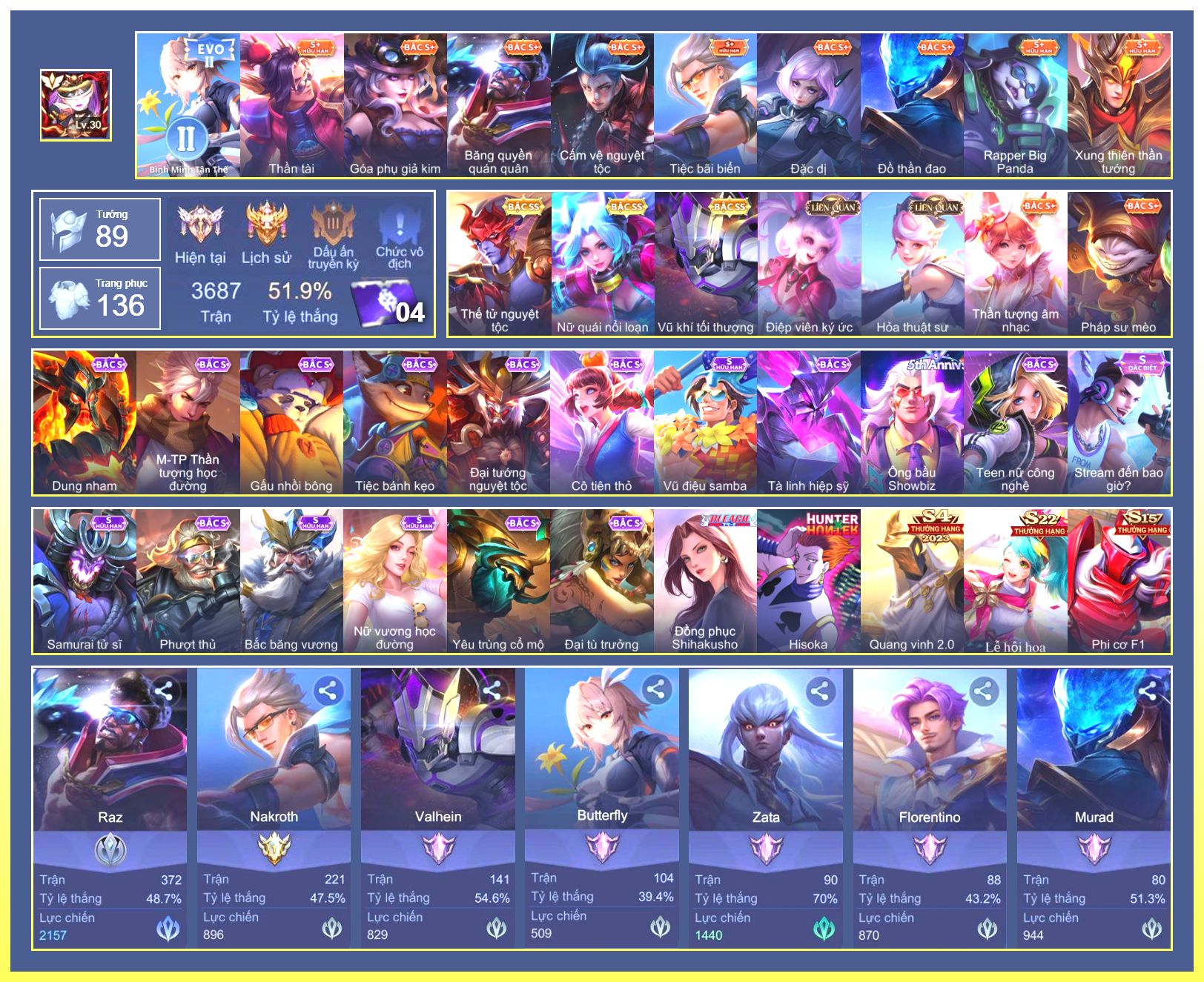 Rất Nhiều Skin Đẹp Vip.Ngọc 90.Lavi...