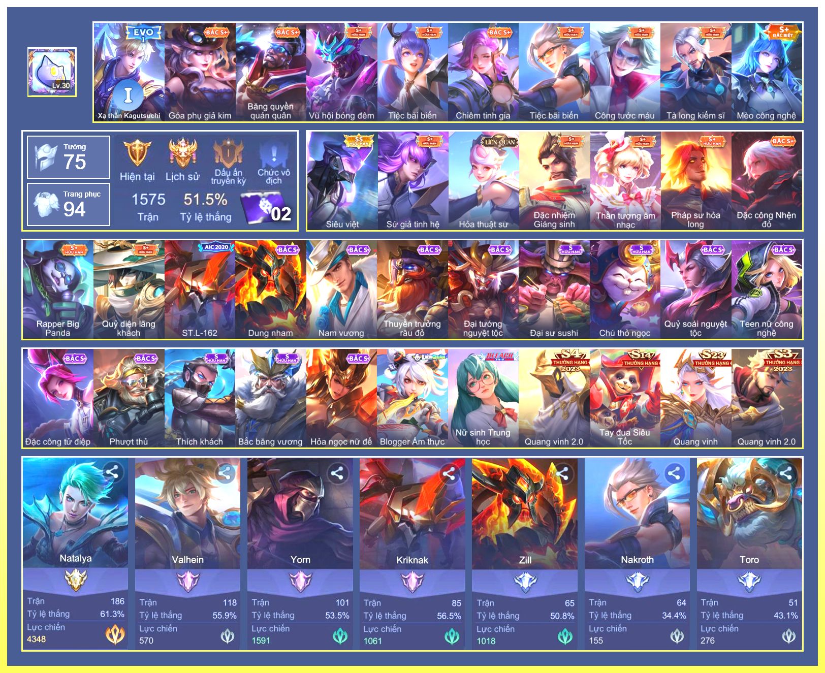 Rất Nhiều Skin Đẹp Vip.Ngọc 90.Dư 3...