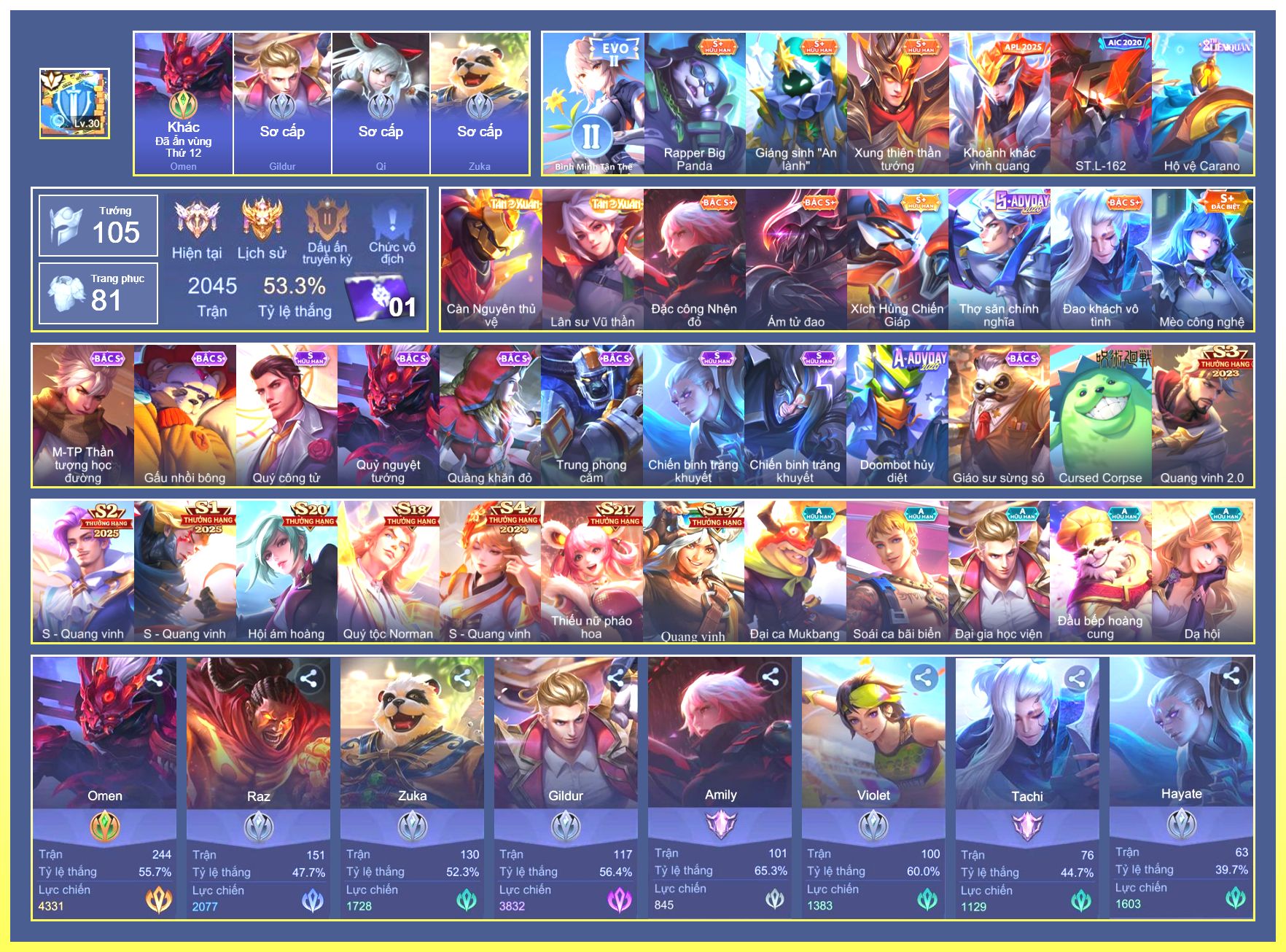 Rất Nhiều Skin Đẹp Vip.Ngọc 90.Omen...
