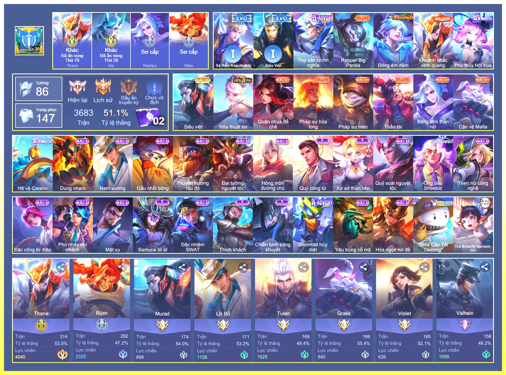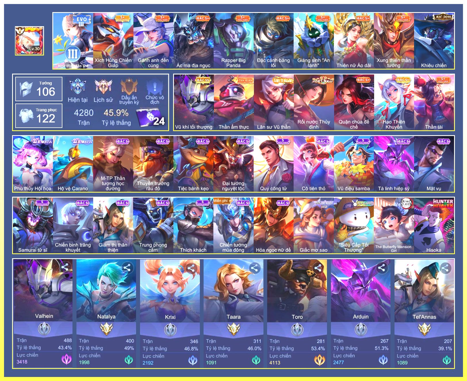 Rất Nhiều Skin Đẹp Vip.Ngọc 90.Lavi...