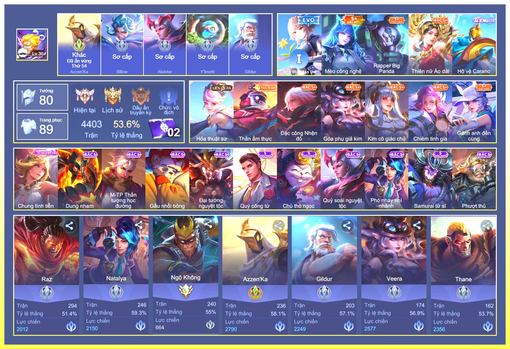 Full Tướng.Full Ngọc.Dư 80K Vàng.Dư...