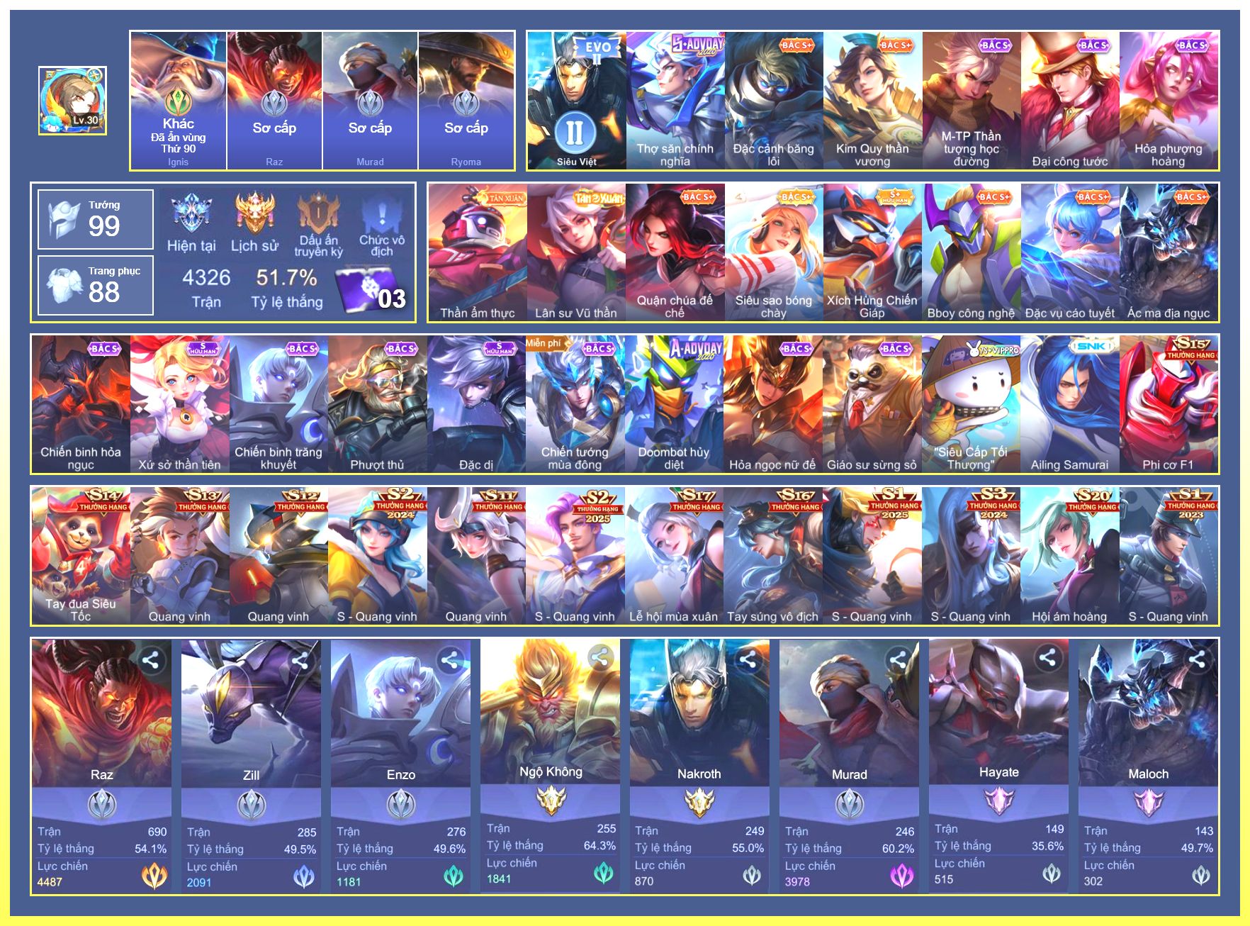 Rất Nhiều Skin Đẹp Vip.Ngọc 90.Dư 4...