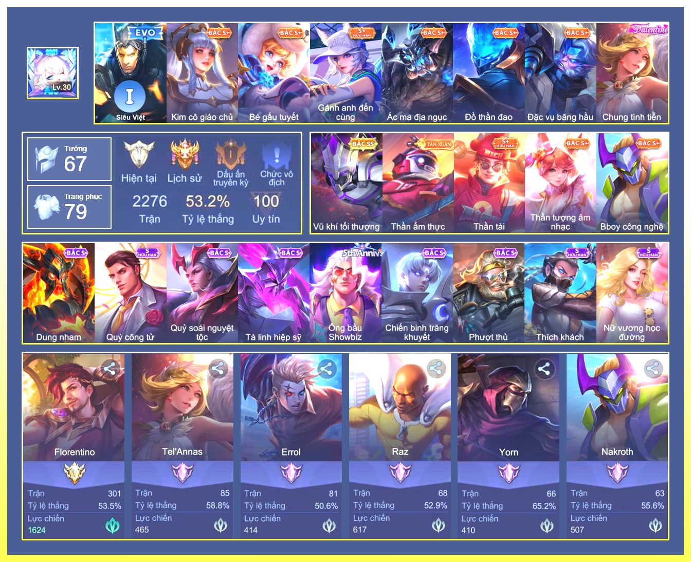 Rất Nhiều Skin Đẹp Vip.Ngọc 90.Omen...