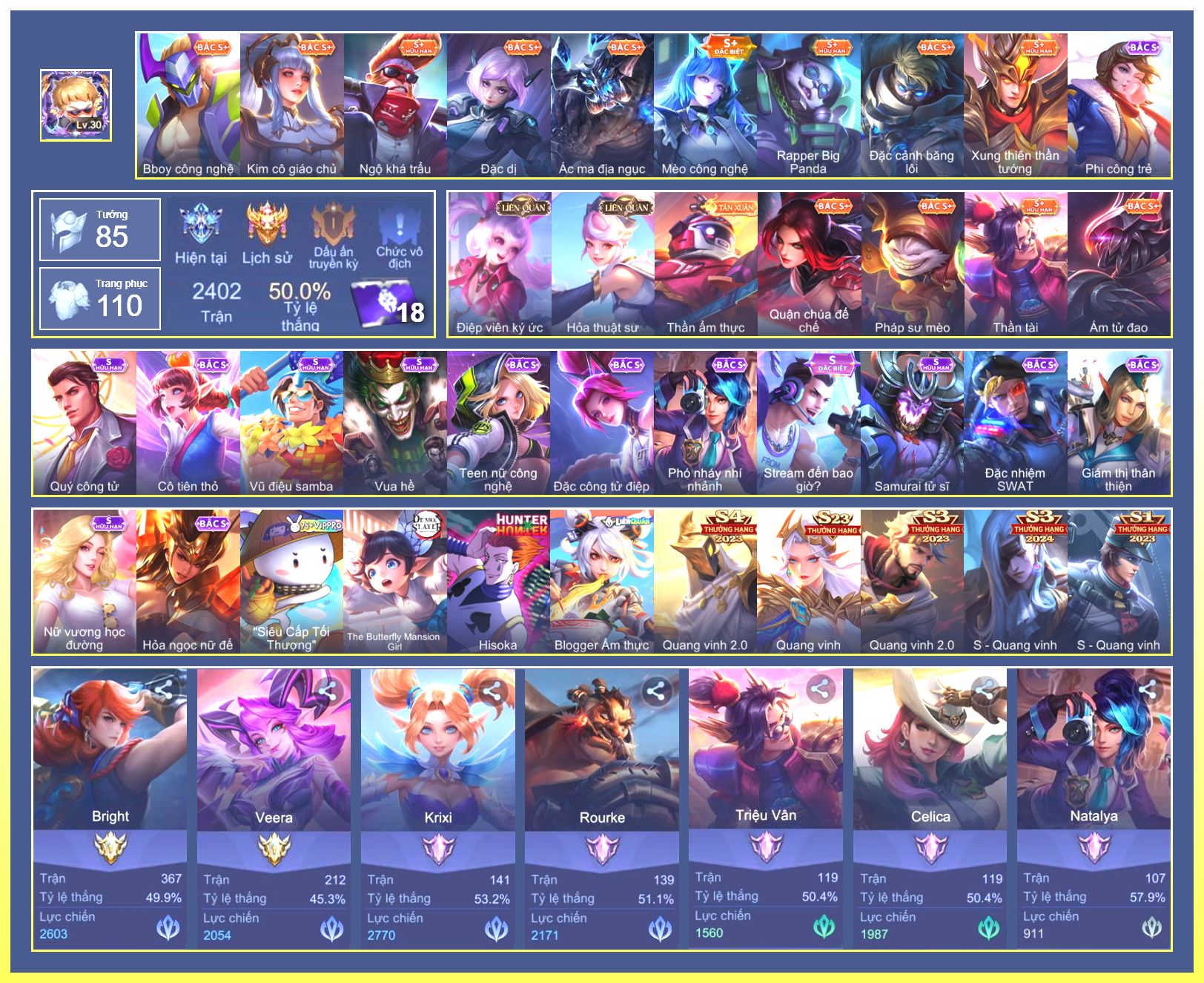Rất Nhiều Skin Đẹp Vip.Ngọc 90.Dư 4...