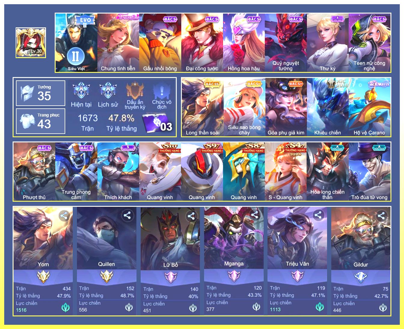 Full Tướng.Full Ngọc.Dư 94K Vàng.Dư...