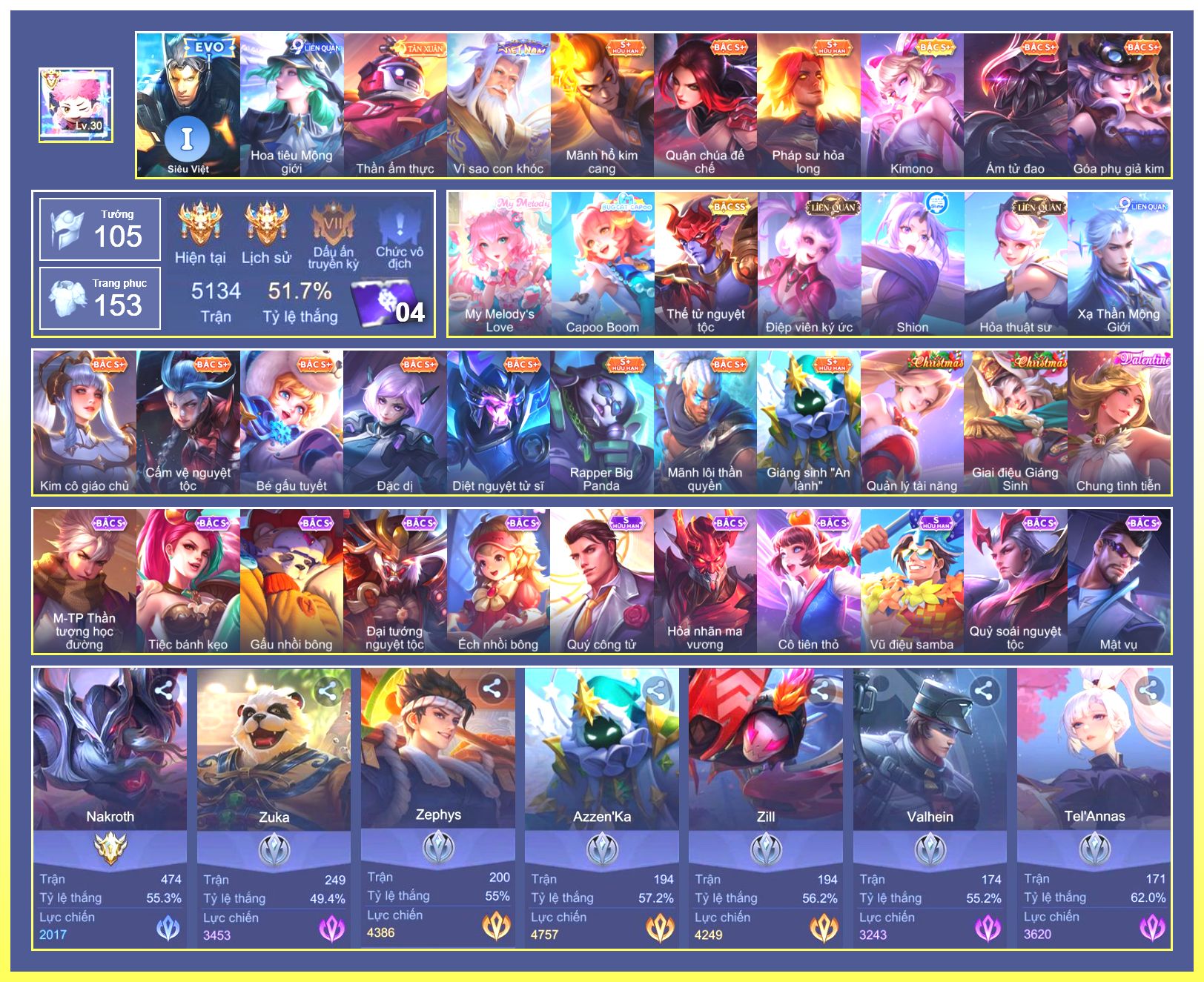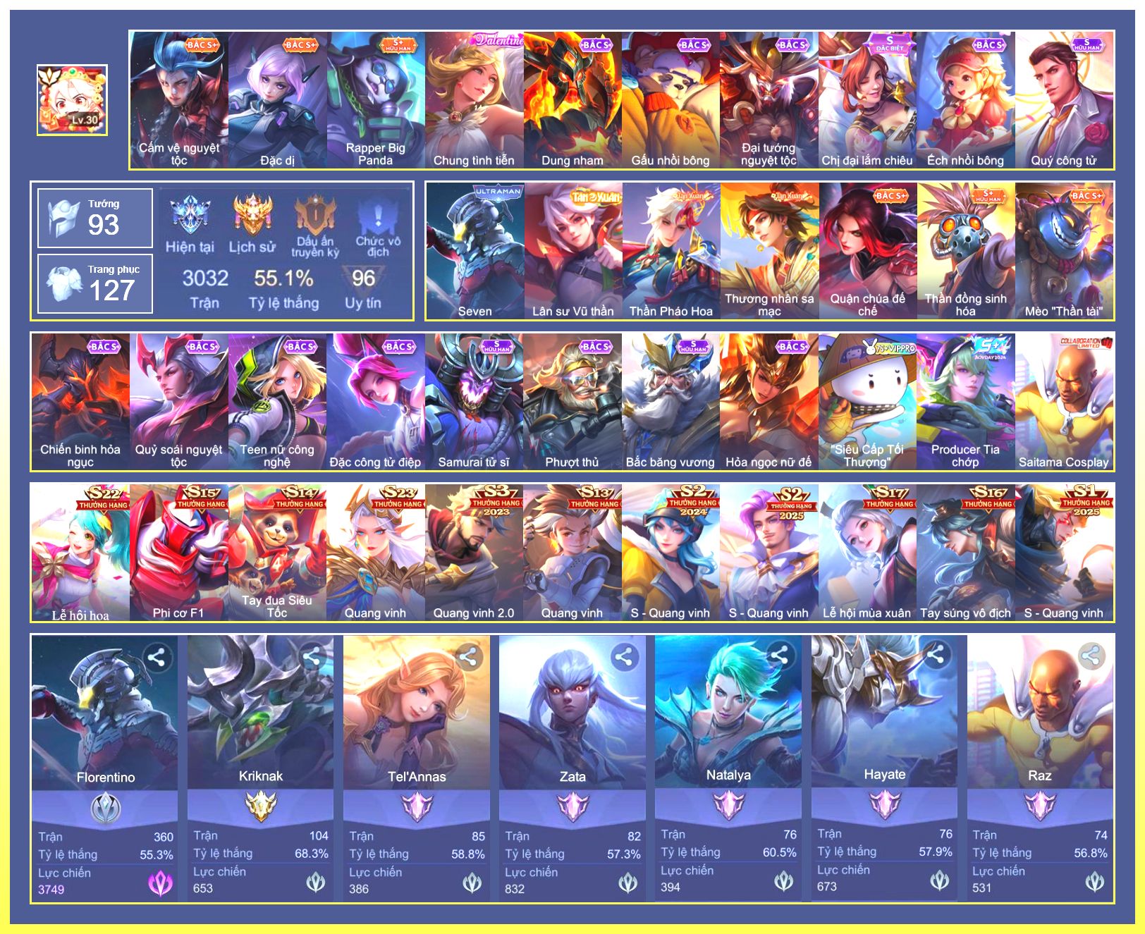 Rất Nhiều Skin Đẹp Vip.Ngọc 90.Dư 6...