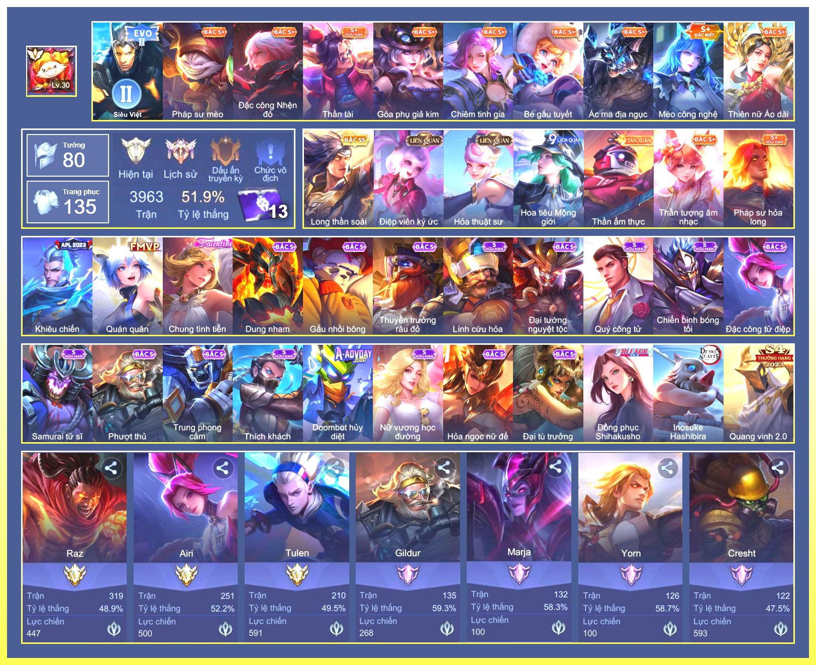 Rất Nhiều Skin Đẹp Vip.Ngọc 90.Dư 4...