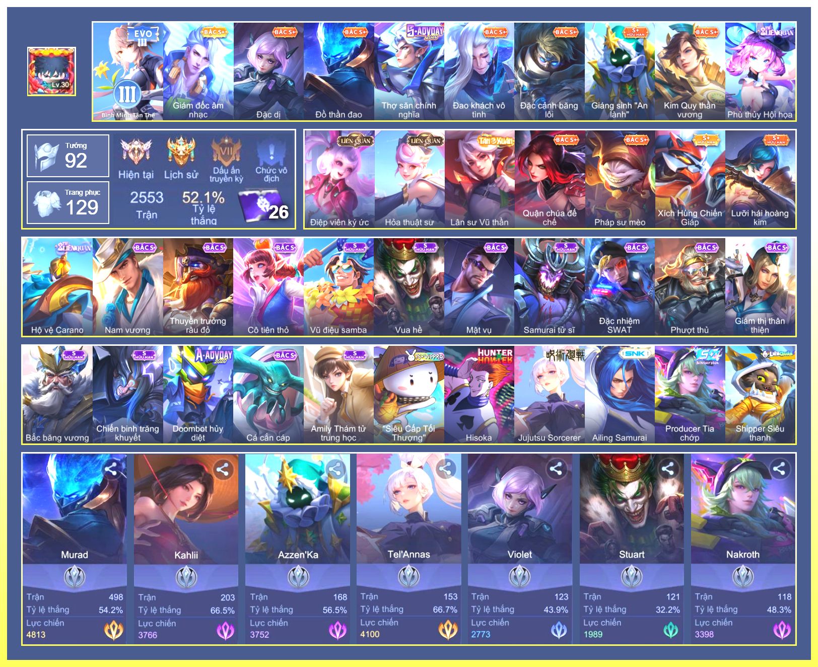 Rất Nhiều Skin Đẹp Vip.Ngọc 90.Dư 9...