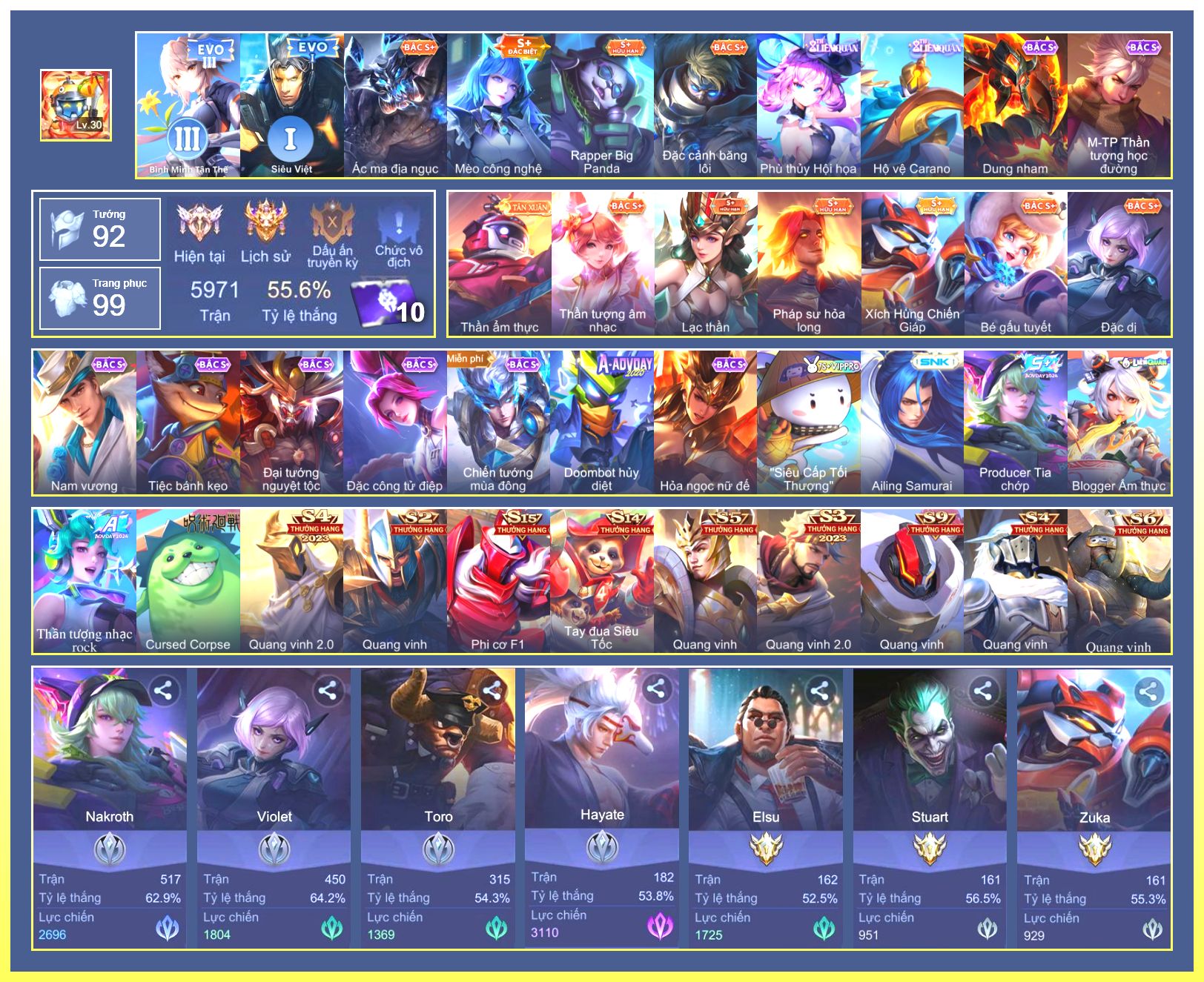 Rất Nhiều Skin Đẹp Vip.Ngọc 90.Dư 5...