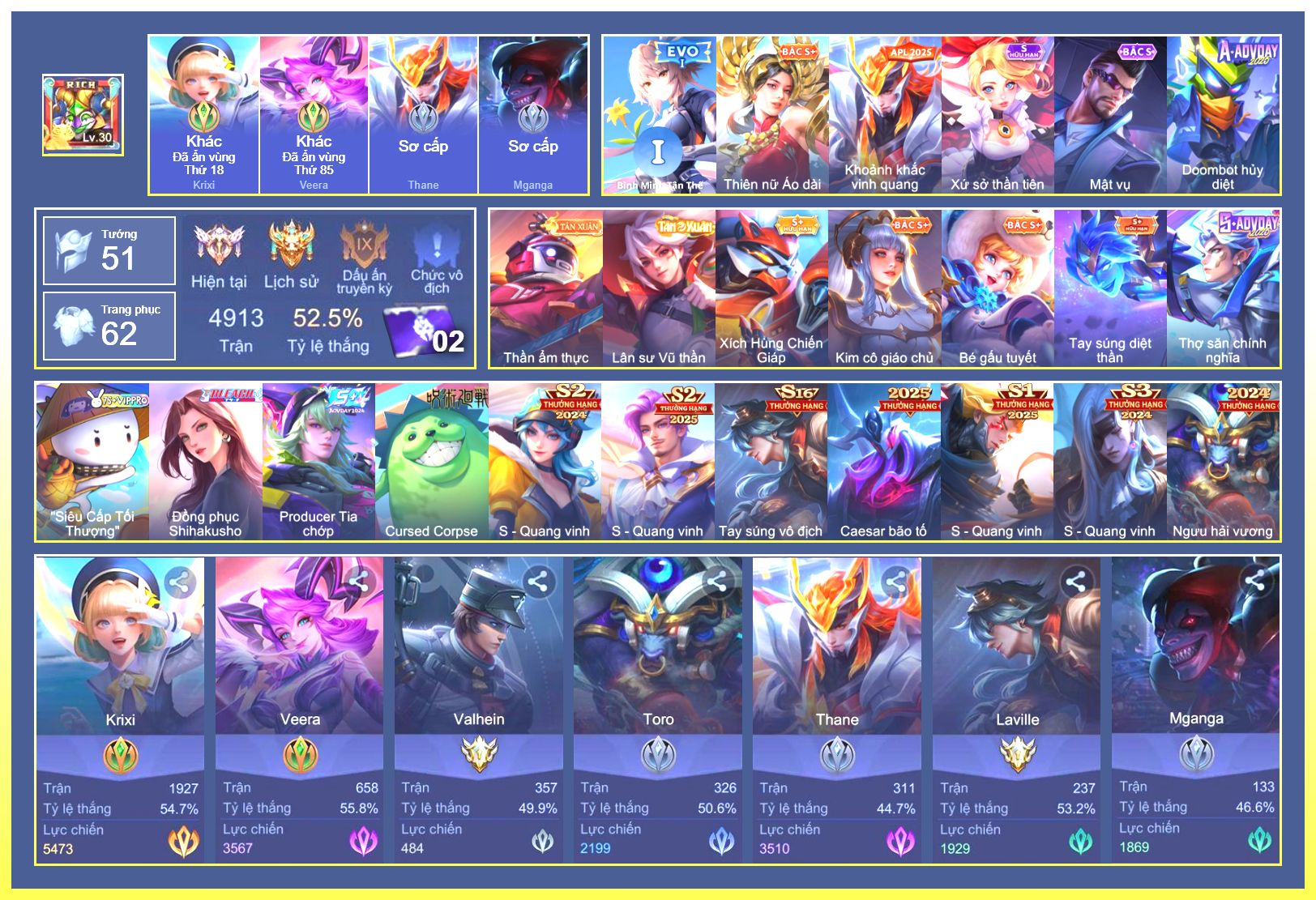 Rất Nhiều Skin Đẹp Vip.Ngọc 90.Dư 4...