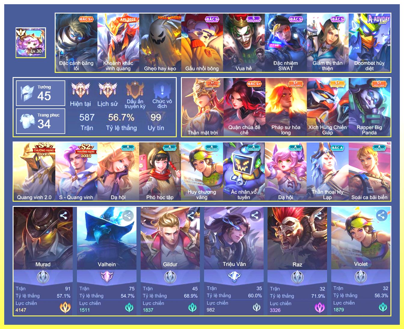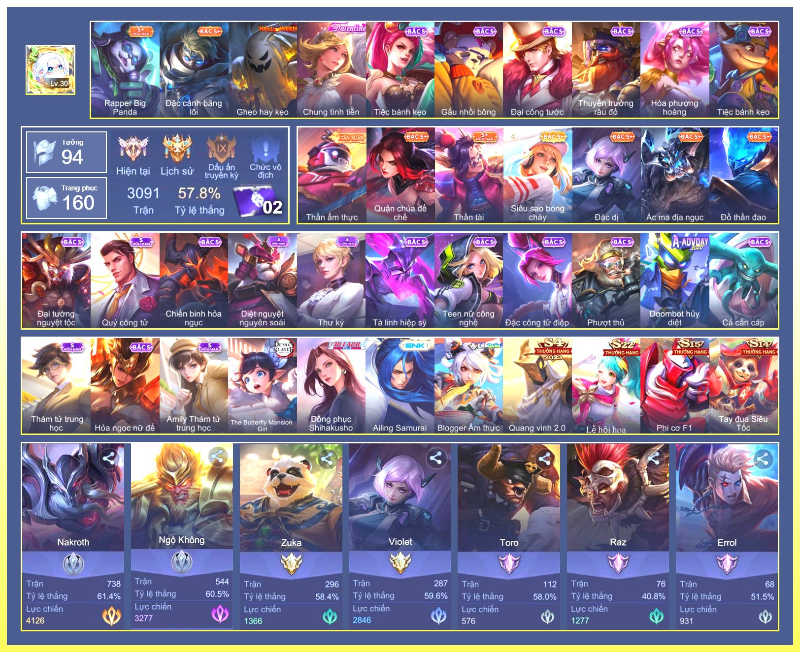 Rất Nhiều Skin Đẹp Vip.Ngọc 90.Dư 7...