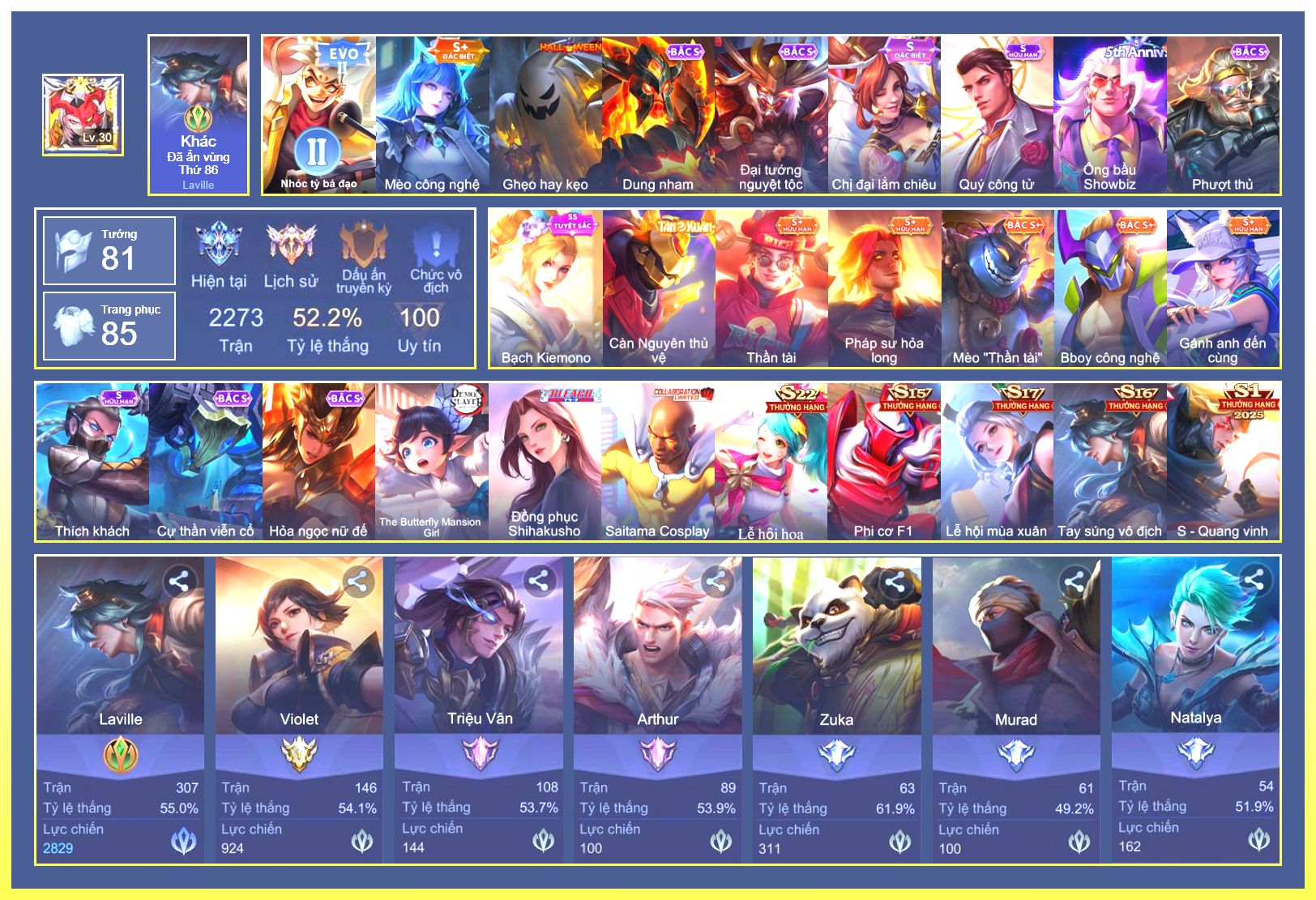 Rất Nhiều Skin Đẹp Vip.Ngọc 90.Dư 5...