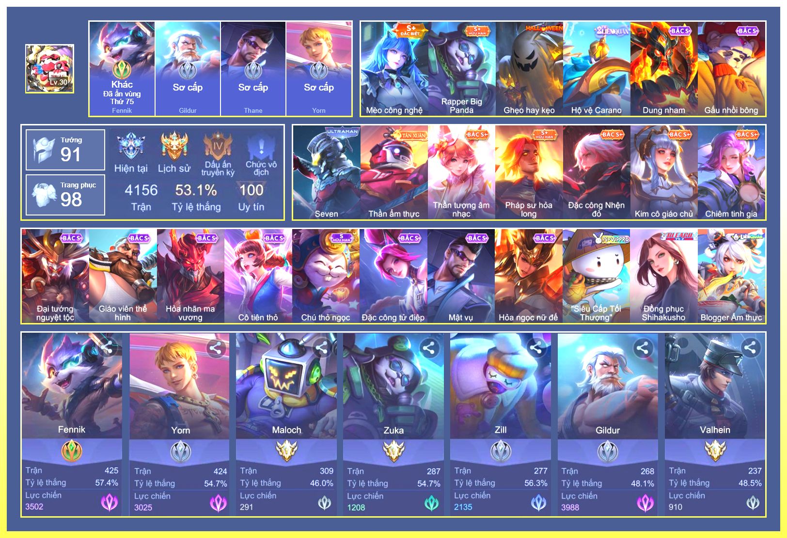 Rất Nhiều Skin Đẹp Vip.Ngọc 90.Dư 4...