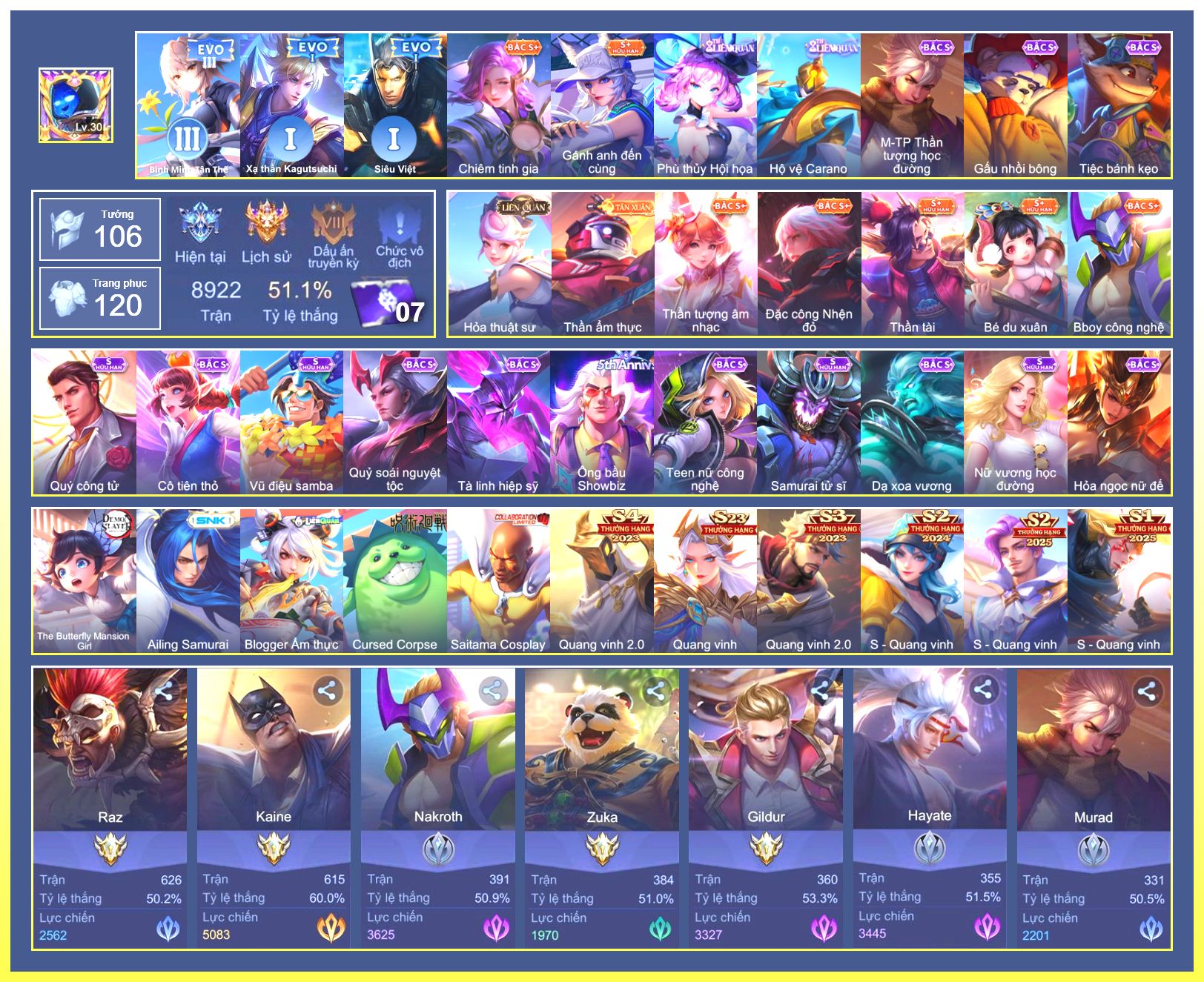 Rất Nhiều Skin Đẹp Vip.Ngọc 90.Dư 1...