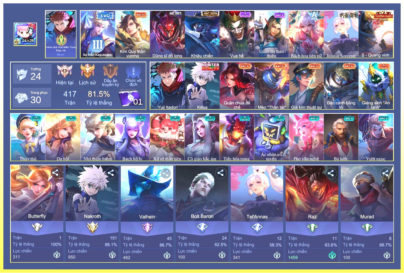 Rất Nhiều Skin Đẹp Vip.Ngọc 90.Dư 3...