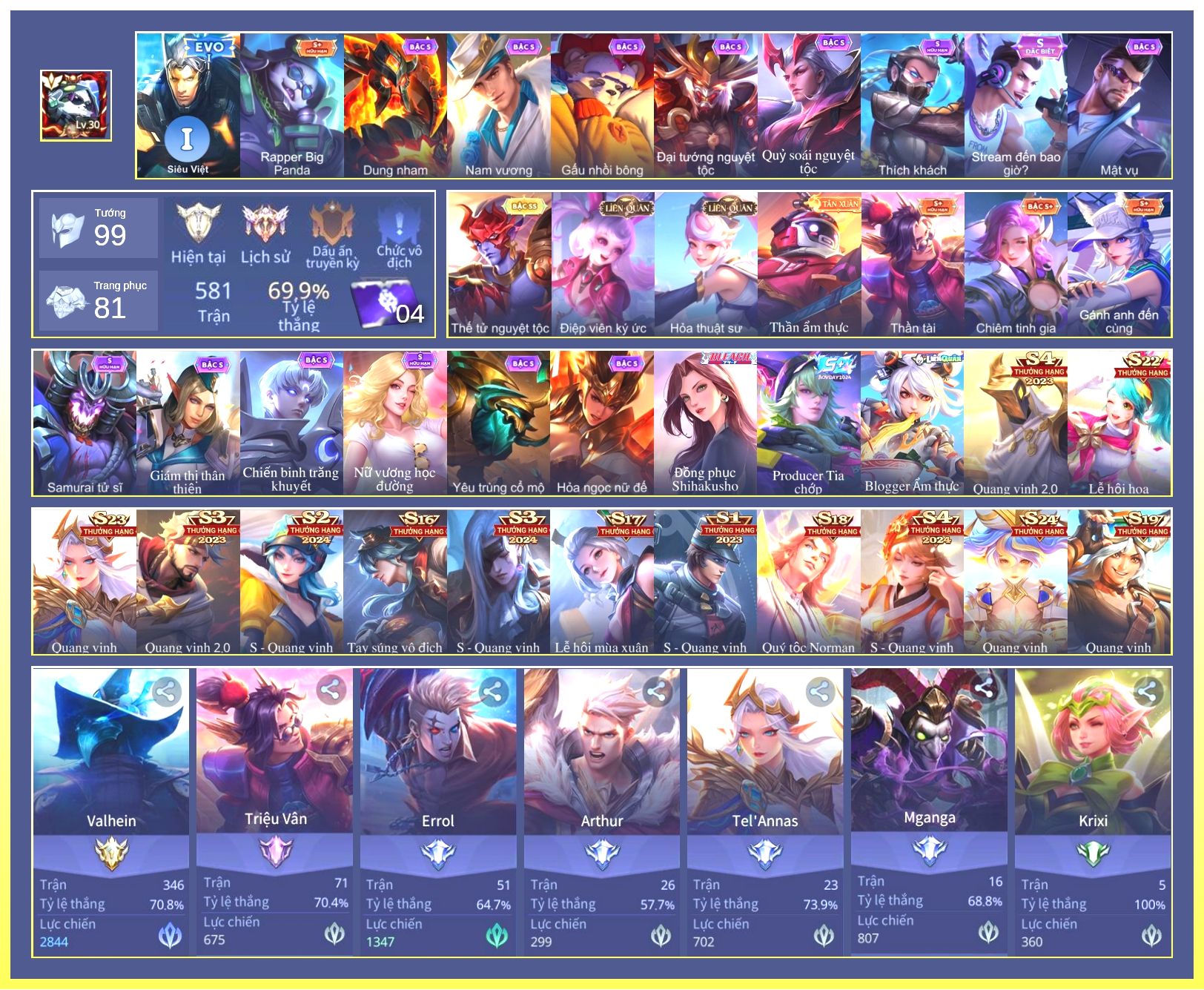 Rất Nhiều Skin Đẹp Vip.Ngọc 90.Dư 4...