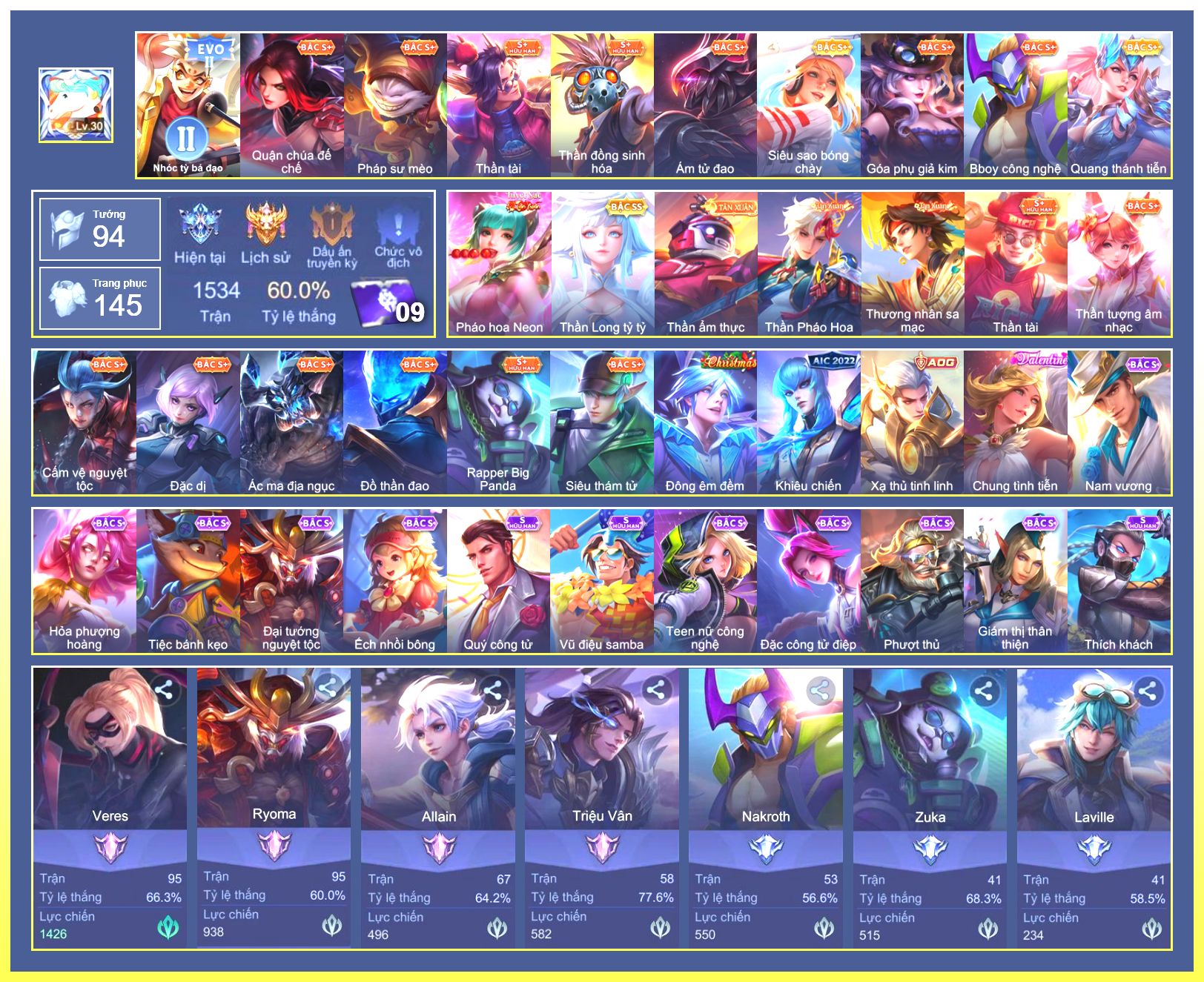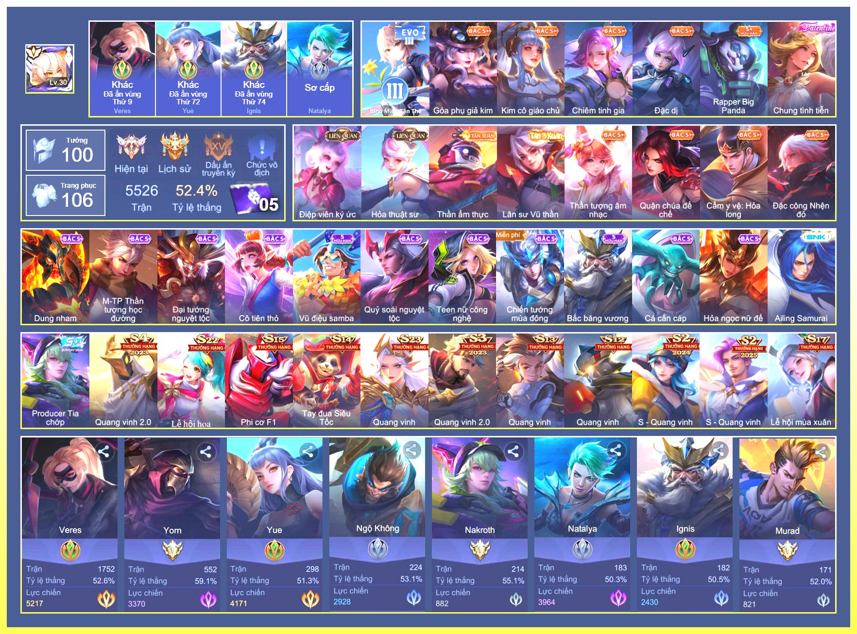 Rất Nhiều Skin Đẹp Vip.Ngọc 90.Dư 7...