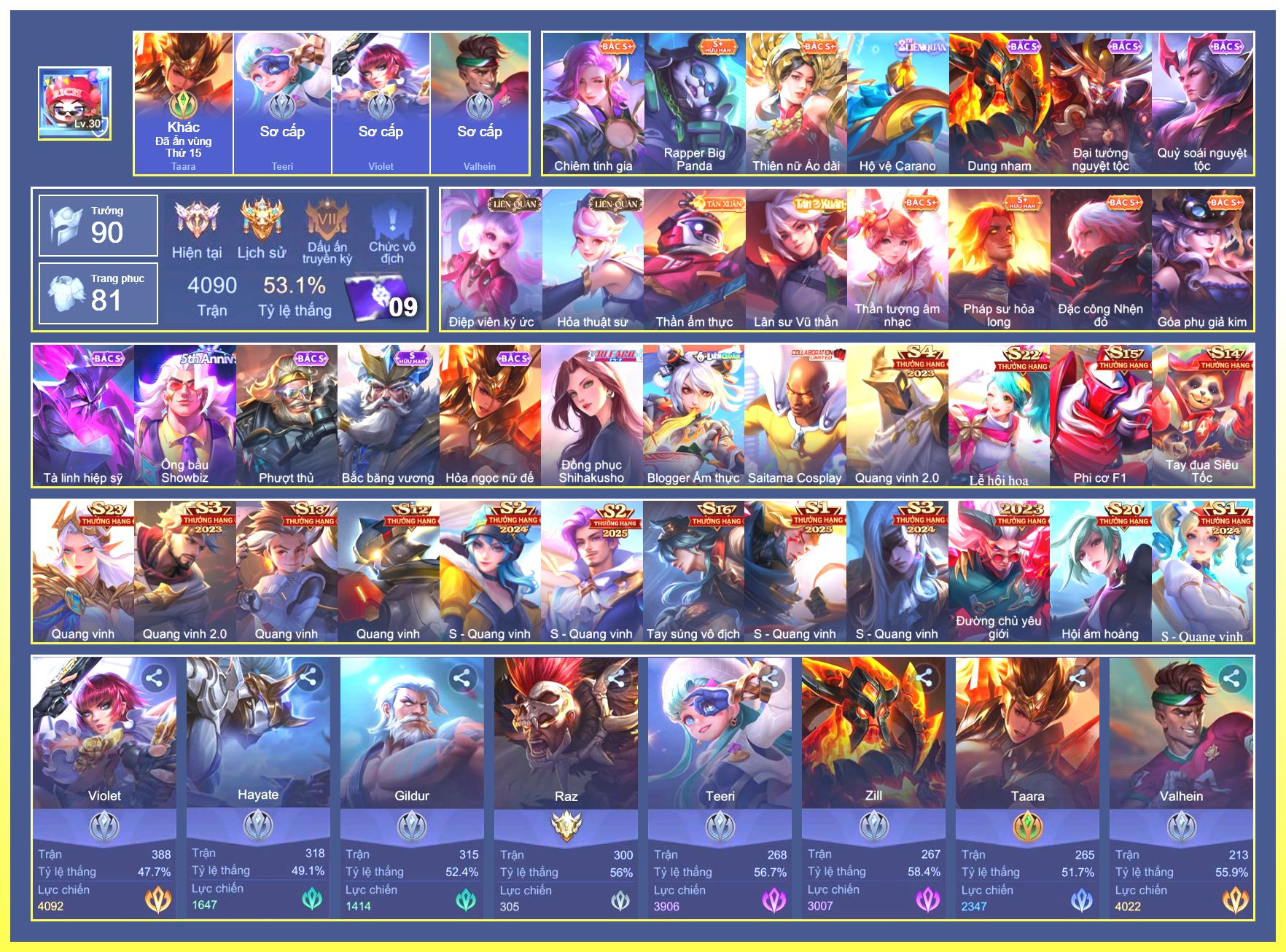 Rất Nhiều Skin Đẹp Vip.Ngọc 90.Dư 4...