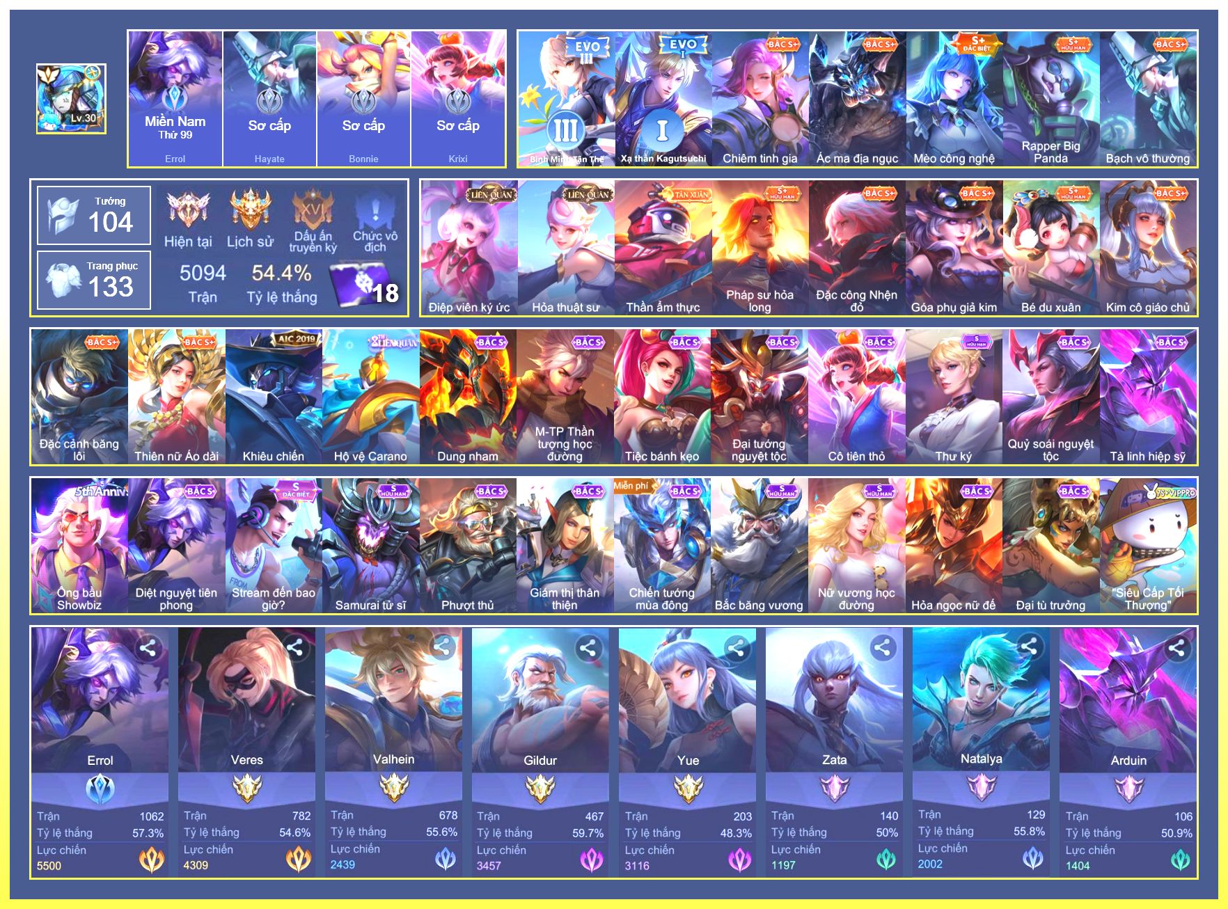 Rất Nhiều Skin Đẹp Vip.Ngọc 90.Dư 6...