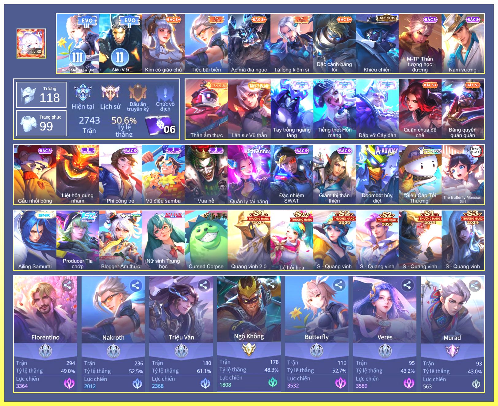 Rất Nhiều Skin Đẹp Vip.Ngọc 90.Dư 3...