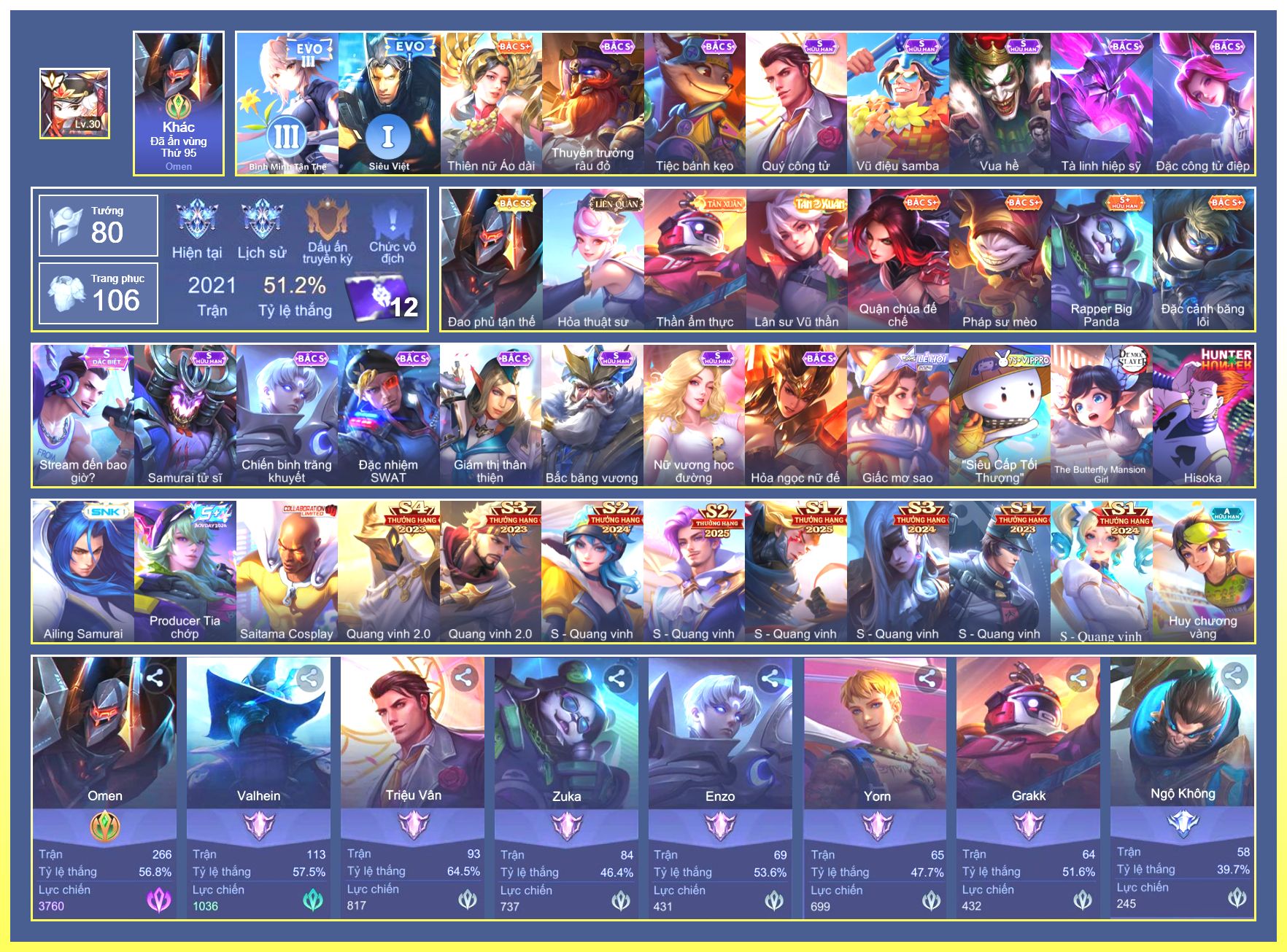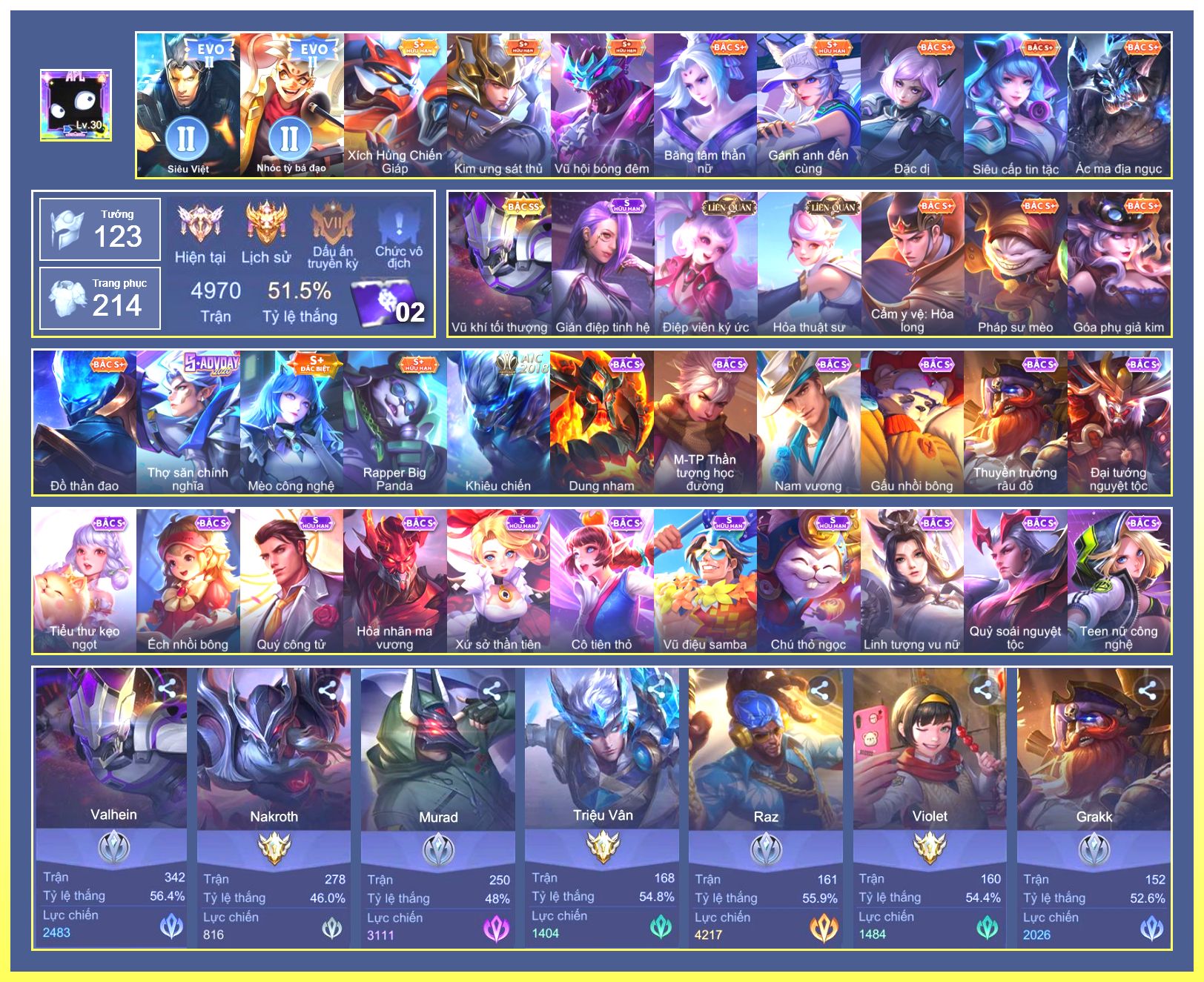 Rất Nhiều Skin Đẹp Vip.Ngọc 90.Dư 7...