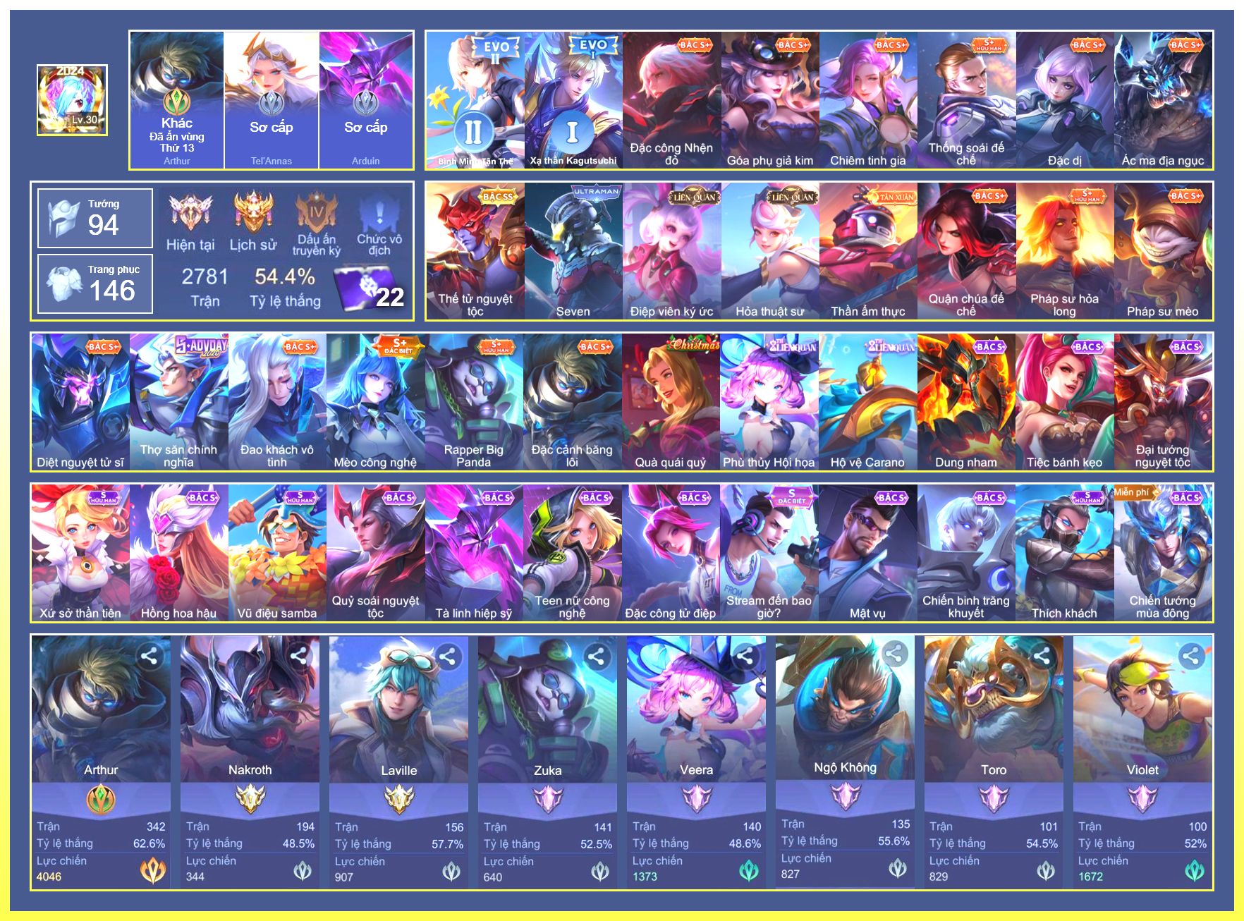 Rất Nhiều Skin Đẹp Vip.Ngọc 90.Dư 4...