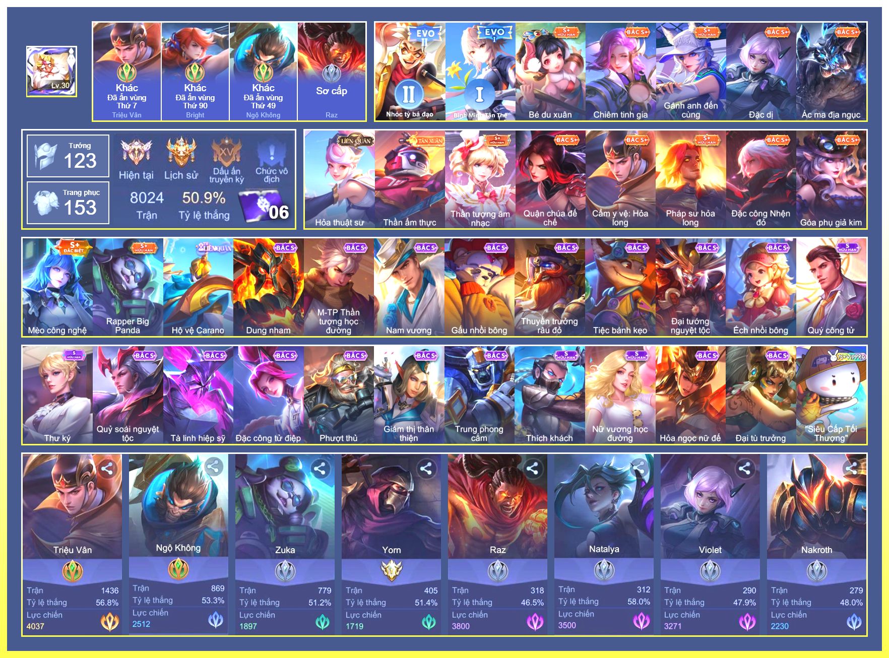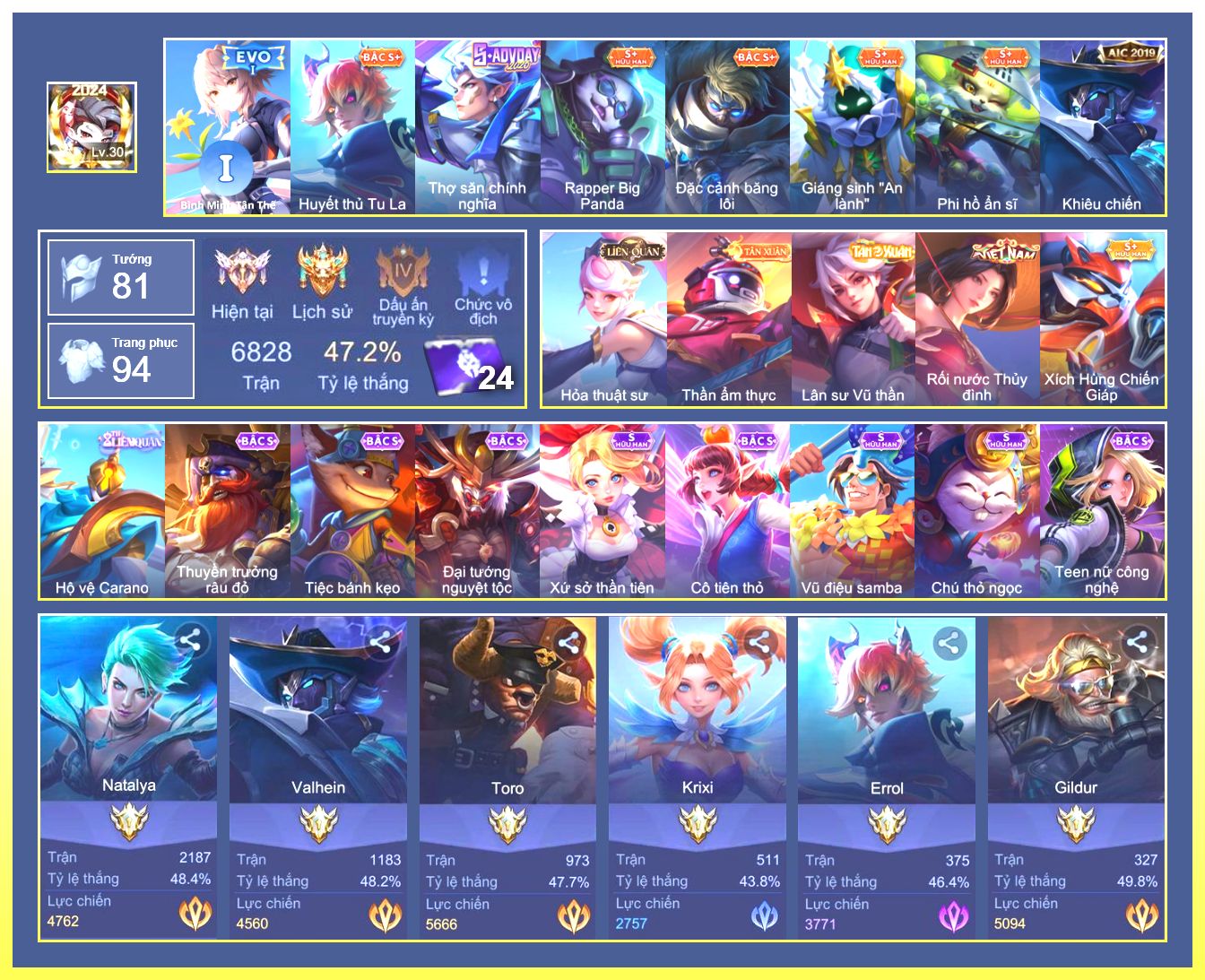 Rất Nhiều Skin Đẹp Vip.Ngọc 90.Dư 6...