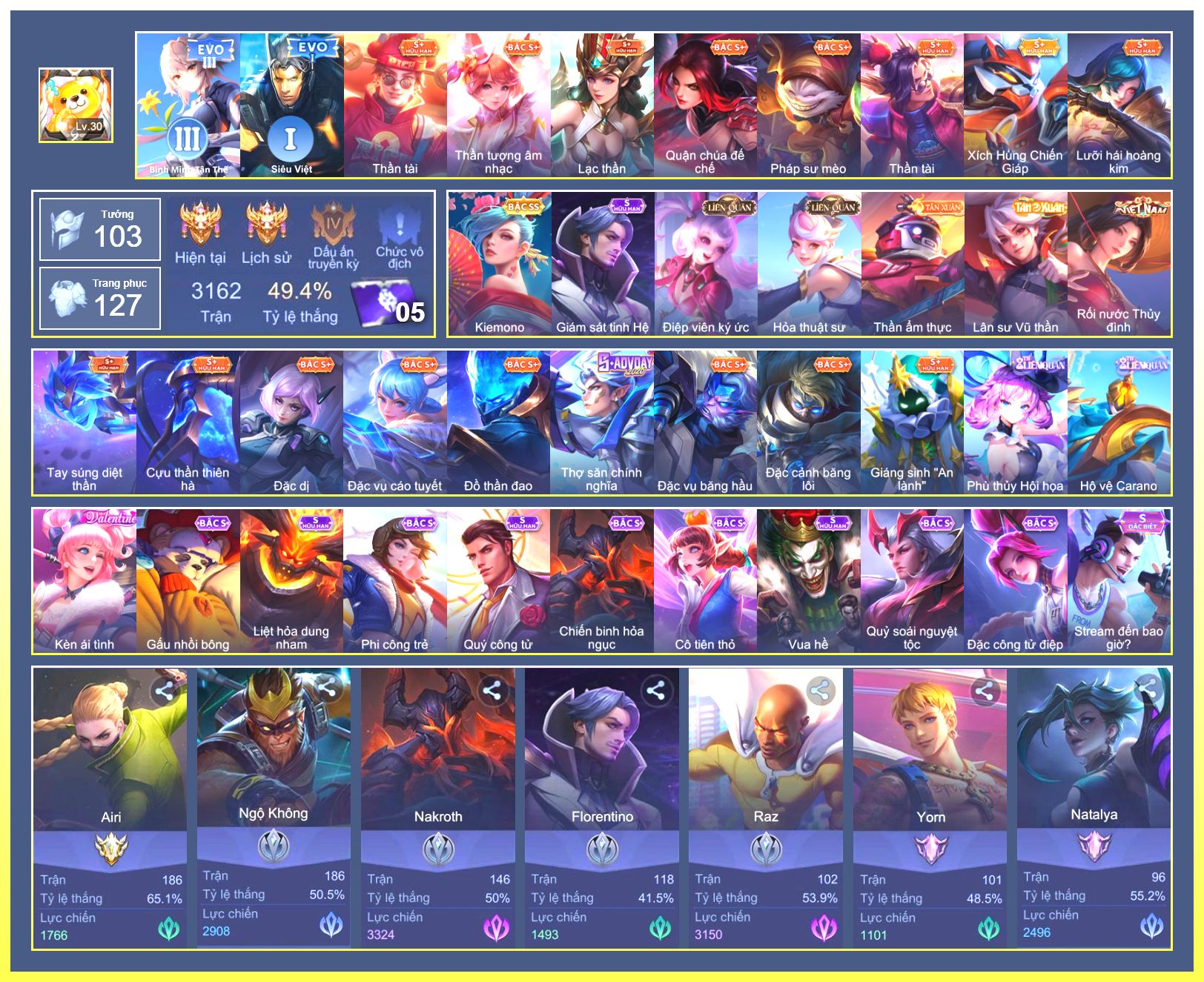 Rất Nhiều Skin Đẹp Vip.Ngọc 90.Dư 3...