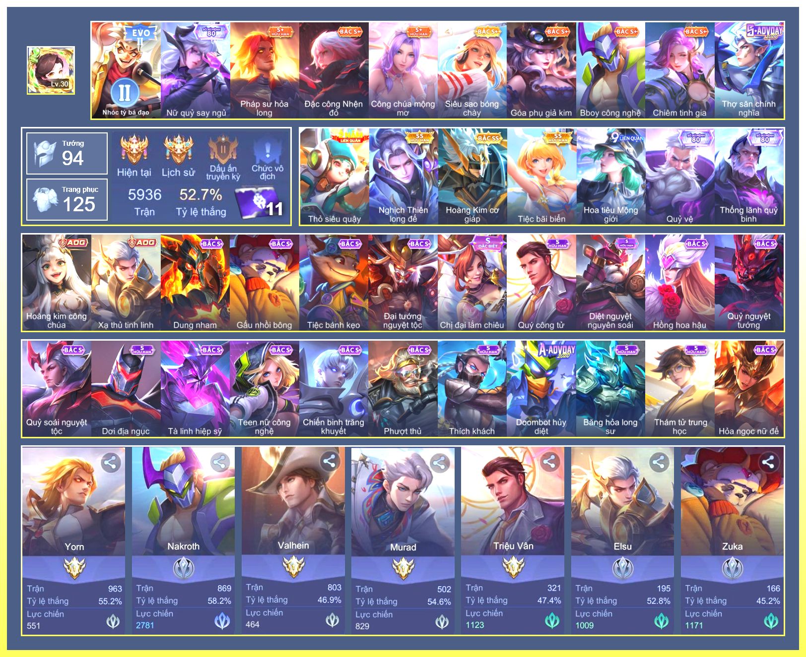 Rất Nhiều Skin Đẹp Vip.Ngọc 90.Dư 3...